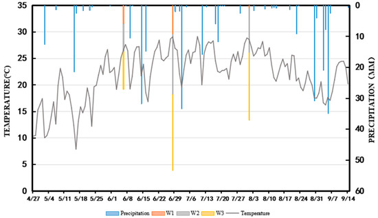 Precipitation and temperature during co-growth period of the apple and soybean.