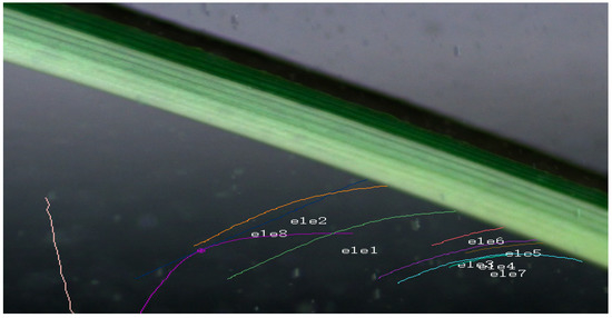 The phenomenon of electrostatic surround is characteristic of electrostatic spray [7,8]. At present, there are few studies that can accurately capture this phenomenon. Most researchers use numerical simulation to predict the trajectory of fog droplets [17,18,19]. In this paper, we identify and track the electrostatic droplets in the flow field of electrostatic spray by combining CFD simulation and high-speed photography. This research method can verify the simulation results. The simulation analysis and high-speed photography are consistent with the motion trajectory of the droplet. The above results show the electrostatic surround between electrostatic droplets and target crop leaves. The results verify the actual spraying effect of Ru et al. [14]. The experimental algorithm has been presented in the attachment. The study revealed the relationship between the motion law of electrostatic droplets and the effect of deposition, and provided a new method for further studying the electrostatic spray technology.