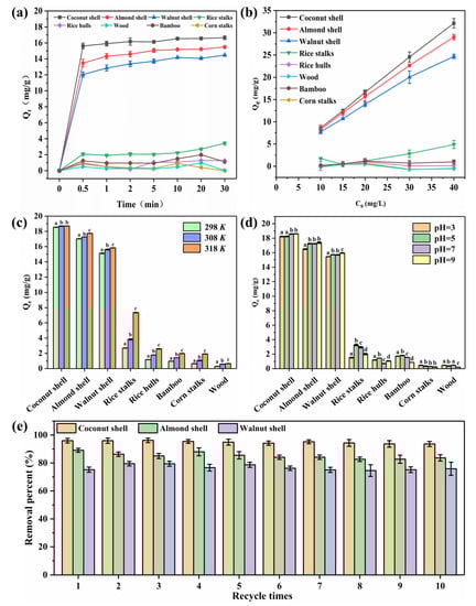 3.3. Nutshell Biochars Showed a Stabile Adsorption Capacity in Different Environments