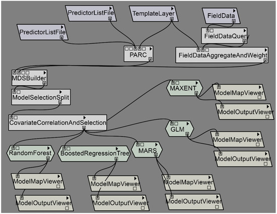 VisTrails v.2.2.3 pipeline with the SAHM v.2.0.1 (Software for Assisted Habitat Modeling) for this specific study.