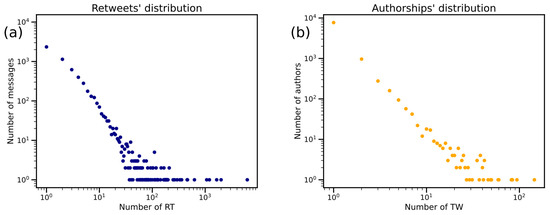 Since only limited information regarding the authors of posts on Twitter is available, most of the first part of the WoS analysis was neglected on the Twitter dataset. Nevertheless, the analysis of semantic networks was performed on Twitter’s new content messages, i.e., those that are not retweets. It is worth mentioning that this approach is similar, but different, to others in the literature. For instance, in [33] the semantic network was inferred using only a tweets’ hashtags.