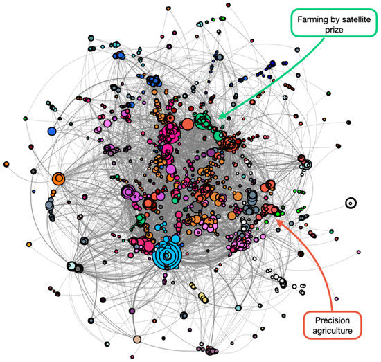 The importance of the use of satellite RS in agriculture is significant considering the wide range of available applications, sensors and resolutions. Understanding the main developments in the use of satellite imagery in agriculture is crucial for synthesising the existing knowledge base, advancing the line of research and making better use of this technology. In this context, literature reviews are increasingly becoming important due to the fast-growing pace of scientific production [21]. But traditional review papers focus only on the content of publications and may suffer from the subjective biases of the researchers involved in the process [22]. By contrast, bibliometrics applies quantitative analysis and statistics to perform a systematic, objective and reproducible analysis of the unstructured and large body of information [23]. It can be used to detect the most influential authors/journals/institutions/countries, the principal research streams, the emerging and trending topics and to show a clear overview of a research topic [24]. In doing this, bibliometrics takes advantage of scientific methods such as Social Network Analysis (SNA) [25].