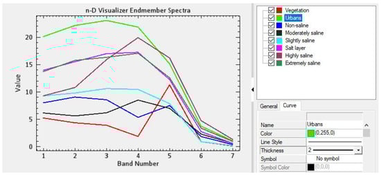 - The Landsat-8 (OLI) satellite image data were radiometrically, geometrically, and atmospherically corrected using ENVI 5.1 software [26] to minimize the radiometric distortions and atmospheric perturbations caused by clouds, aerosols, and other atmospheric particles, respectively. These data were downloaded from the United States Geological Survey (USGS) website through Path, 178 and Row, 41 obtained on 8 December 2021.