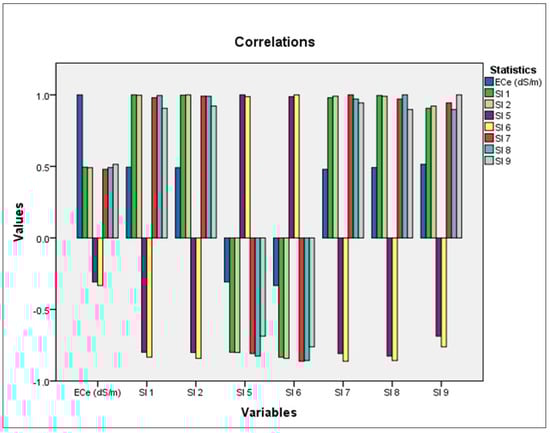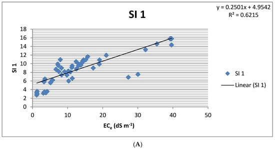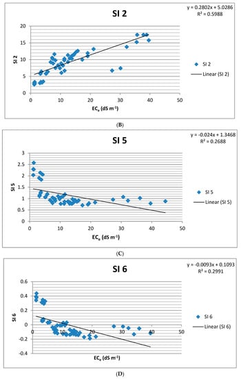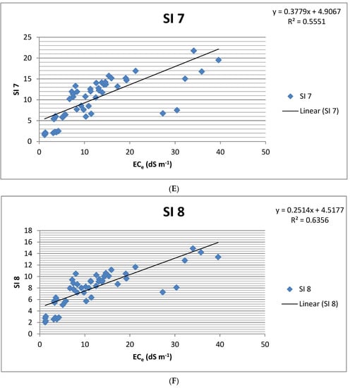 | ECe (dS m−1) | SI 1 | SI 2 | SI 7 | SI 8 | SI 9 | ||