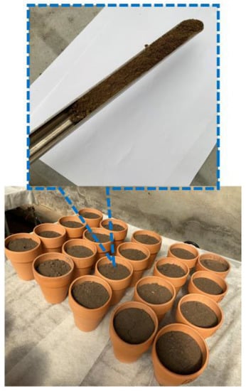 After 30 days of incubation, five random soil cores (0–20 cm deep and 2.2 cm in diameter) were collected from each pot and pooled together to form one composite sample per treatment. The sampling selection by multi-point mixing method via a straight-through-the-soil drill was used for sampling, for a total of ten soil samples (Figure 2). Plants, visible animals, and stone particles were removed from the samples and passed through a 2-mm sieve. Each composite soil sample was stored in three parts: the first part was snap frozen in liquid nitrogen and then transferred to a ˗80 °C refrigerator for DNA extraction and microbial community fractionation; the second part was air dried and stored at room temperature (25 °C) for the measurement of physical and chemical soil properties such as soil organic carbon (SOC), pH, etc.; the third part was stored in a −20 °C refrigerator for mineral nitrogen [ammonium (NH4+-N) and nitrate (NO3--N)] measurement.