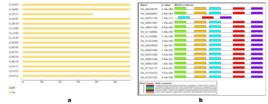 GhSAMS genes’ structure (a), and conserved motifs in their promoter region (b).
