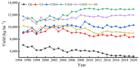 4.2. Maize Yield under Long-Term Combined Application of Organic–Inorganic Nitrogen