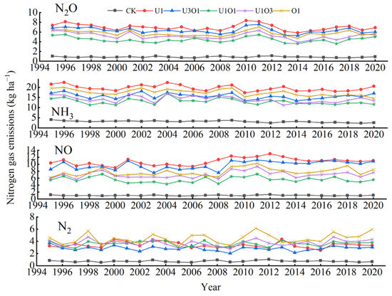 Zhou, H.; Wang, Y.; Wang, J.; Liu, H.; Li, H.; Guo, J. Effects of Long-Term Organic–Inorganic Nitrogen Application on Maize Yield and Nitrogen-Containing Gas Emission. Agronomy 2023, 13, 848. https://doi.org/10.3390/agronomy13030848