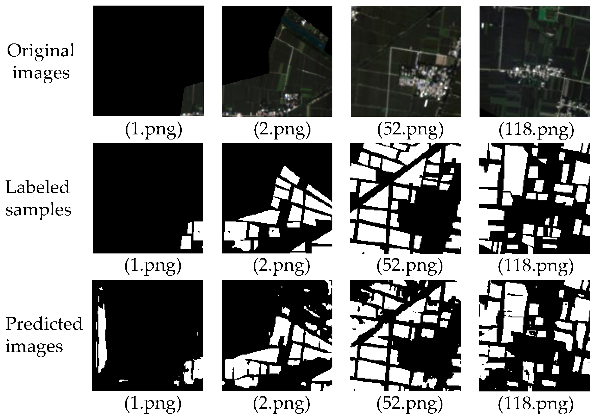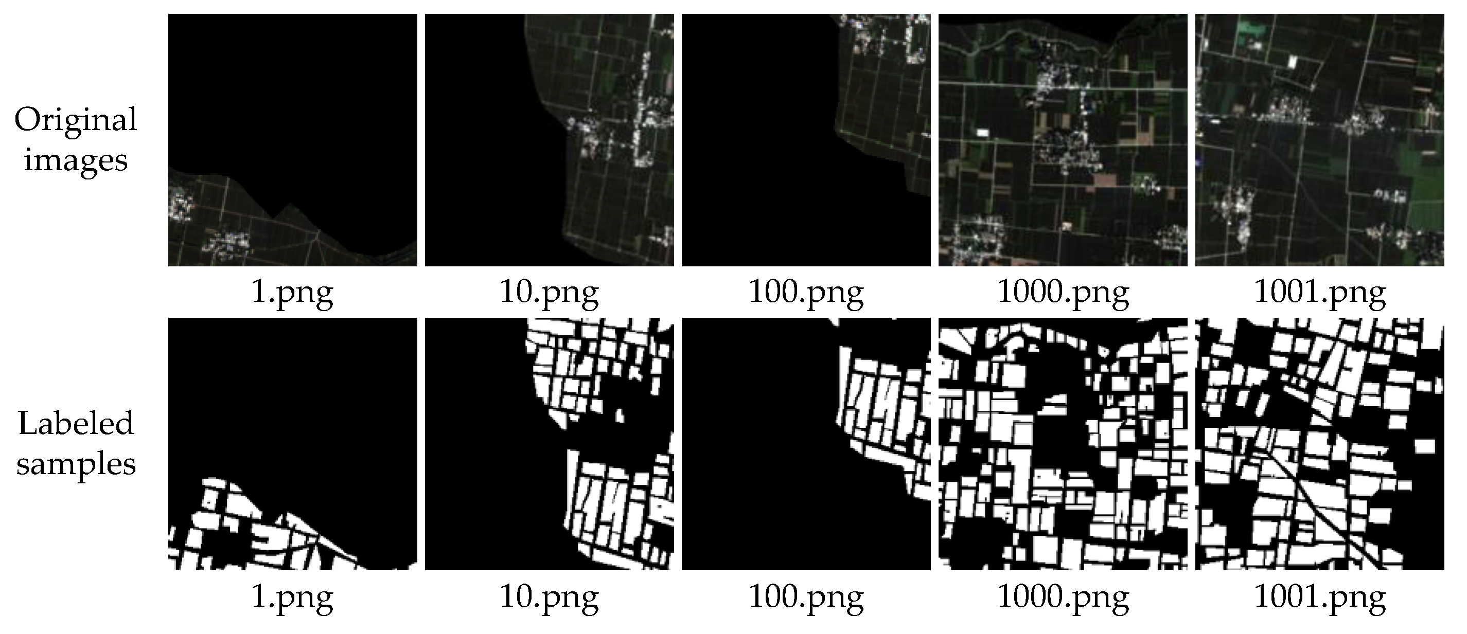 - Liu, G.; Bai, L.; Zhao, M.; Zang, H.; Zheng, G. Segmentation of wheat farmland with improved U-Net on drone images. J. Appl. Remote Sens. 2022, 16, 034511. [Google Scholar] [CrossRef]