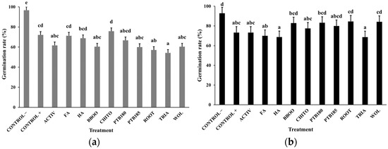 2.4.1. Germination Rate and Percentage of Healthy Plants
