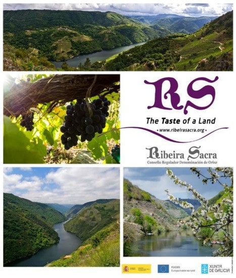 - Ribeira Sacra. Ribeira Sacra [Fotografía]. La D.O. Ribeira Sacra Despide el Mejor año de su Historia. 30 December 2019. Available online: https://elcorreodelvino.com/wp-content/uploads/2019/12/BURDEOS-LONDON_2PEQ-002.jpg (accessed on 19 March 2022).