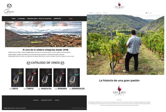 Example of websites in the Lanzarote and Ribeira Sacra AOs. Source: Wineries’ websites.