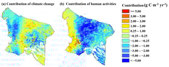 Statistical results of the contributions of climatic factors and human activities to the dynamics of grassland NPP, (g C m−2 yr−1).