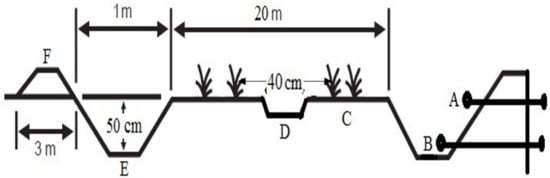 The qualitative analysis of the rice seeds was conducted by immersing the seeds in a 3% salt solution or soaking them in a ZA solution (225 g ZA/l water). The immersed seeds indicated their suitability for planting and were, accordingly, preselected for this experiment. Following which, the seeds were first soaked and then aged in sequence for 24 h. The process of seeding was carried out by sowing the germinated seeds in the seeding plots. The nursery was fertilized with ponska NPK, urea, and SP-36, each at 15 g m−2. After the seedlings were 15 days old, the same were planted, with 2 seeds per hole. The 2:1 row legowo cropping system was implemented, with 40 cm for the largest inter-row spacing, 20 cm for the smallest inter-row spacing, and 10 cm for the in-row spacing. The planting conditions were muddy, in order to facilitate the process of making planting points. Then, the seeds were nurtured until the harvest.