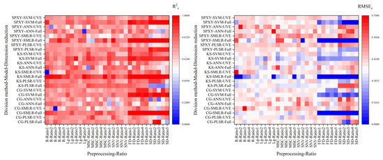 If the SMLR algorithm is regarded as a band-screening algorithm, combined with the effect of UVE bands screening, it can be seen that there were different effects when band screening was based on different preprocessing algorithms, sample division methods, and ratios.