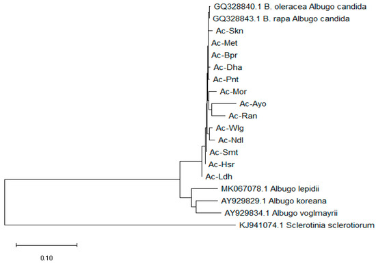 - Kaur, P.; Sivasithamparam, K.; Barbetti, M.J. Pathogenic behaviour of strains of Albugo candida from Brassica juncea (Indian mustard) and Raphanus raphanistrum (wild radish) in Western Australia. Aus. Plant Pathol. 2008, 37, 353–356. [Google Scholar] [CrossRef]