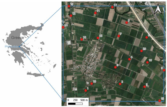 The trial was conducted in the region of Moschochori (Phthiotida, Central Greece; latitude: 38°82′ N, longitude: 22°44′ E, elevation above sea level: ~20 m) during the 2015 growing season (Figure 1). The cultivated land of the region has been traditionally a cotton growing area and extends over an area of 12 km2. However, due to the high cotton cultivation cost and the high irrigation requirements, in recent years, local farmers have also turned to alternative crops, such as cereals and legumes.
