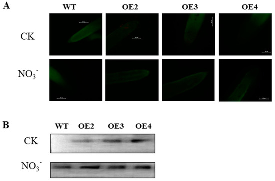 2.4. Analysis of Transgenic Plants under Nitrate Stress