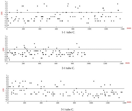The distribution of rice seeds in response to different velocities under the same vacuum pressure of 4.0 kPa in tube C.