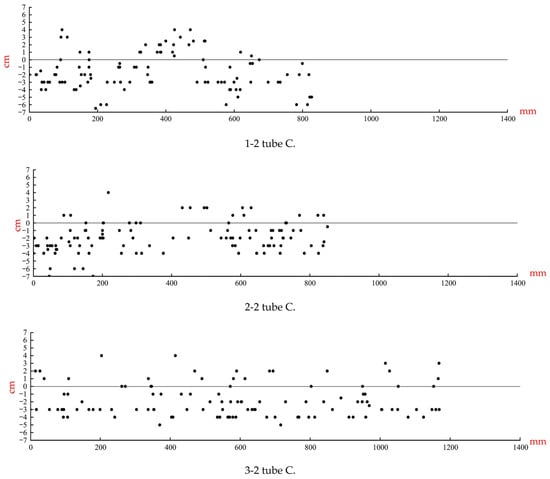 The distribution of rice seeds in response to different velocities under the same vacuum pressure of 2.7 kPa in tube C.