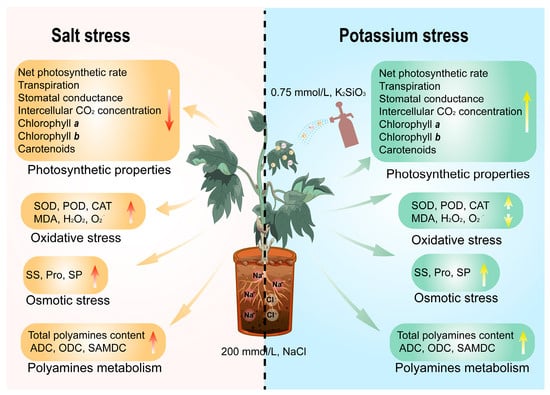 - Yin, L.; Wang, S.; Tanaka, K.; Fujihara, S.; Itai, A.; Den, X.; Zhang, S. Silicon-mediated changes in polyamines participate in silicon-induced salt tolerance in Sorghum bicolor L. Plant Cell Environ. 2016, 39, 245–258. [Google Scholar] [CrossRef] [PubMed]