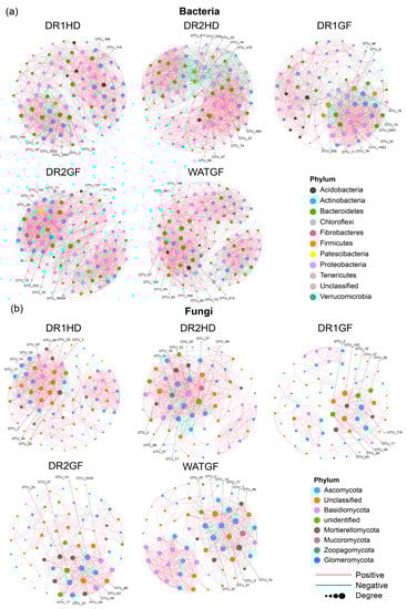 - de Vries, F.T.; Griffiths, R.I.; Bailey, M.; Craig, H.; Girlanda, M.; Gweon, H.S.; Hallin, S.; Kaisermann, A.; Keith, A.M.; Kretzschmar, M.; et al. Soil Bacterial Networks Are Less Stable under Drought than Fungal Networks. Nat. Commun. 2018, 9, 3033. [Google Scholar] [CrossRef]