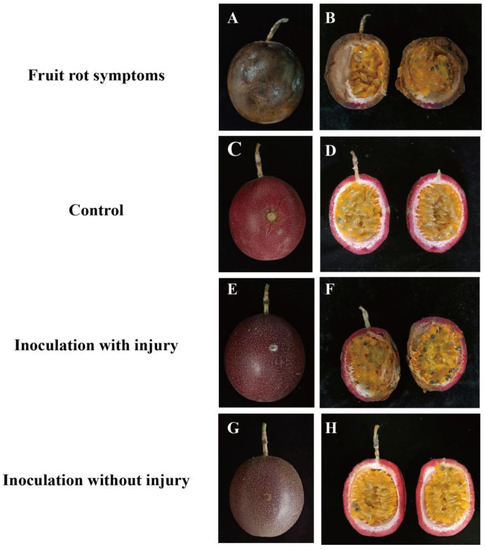 - Zhang, W.; Niu, X.L.; Yang, J.Y. First report of postharvest fruit rot on passion fruit (Passiflora edulis) caused by Lasiodiplodia theobromae in China’s mainland. Plant Dis. 2020, 105, 1198. [Google Scholar] [CrossRef]