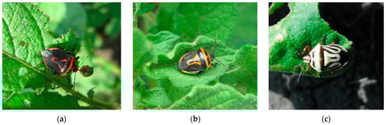 In total, during the research period (2013–2015), insects with a red shield were noted on average about 74%, an orange one—17.7% and a white one—about 8.5%. Fent, M. and Aktac, N. (2007) reported on the cleavage of an enzyme that affects the formation of scutellum coloration at elevated temperatures [23].