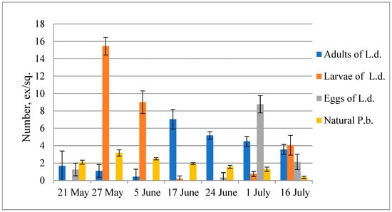 Figure 4 shows the dynamics of the natural population of P. bioculatus and the Colorado potato beetle.