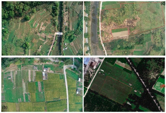 - Wu, M.; Hu, Y.; Wang, H.; Liu, G.; Yang, L. Remote sensing extraction and feature analysis of abandoned farmland in hilly and mountainous areas:A case study of Xingning, Guangdong. Remote Sens. Appl.-Soc. Environ. 2020, 20, 100403. [Google Scholar]