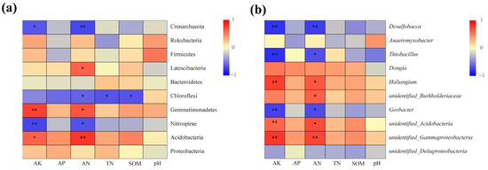 - Fan, K.; Weisenhorn, P.; Gilbert, J.A.; Shi, Y.; Bai, Y.; Chu, H. Soil pH correlates with the co-occurrence and assemblage process of diazotrophic communities in rhizosphere and bulk soils of wheat fields. Soil Biol. Biochem. 2018, 121, 185–192. [Google Scholar] [CrossRef]