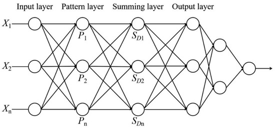 Output layer: The output layer has the same number of neurons as the dimension of the output vector in the learning sample. Each neuron divides the output of the summation layer. Finally, the neuron output corresponds one-by-one to the estimated result element.