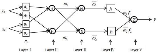 ANFIS is a new fuzzy inference system structure that combines fuzzy logic and neuron networks organically. Using a combination of the back propagation algorithm and the least square method, it can automatically generate If-Then rules by adjusting the premise and conclusion parameters [23,24]. Based on the organic combination of neural network and fuzzy inference, ANFIS not only develops advantages of neural network and fuzzy inference but also offsets their disadvantages. The specific structure of ANFIS is shown in Figure 4.