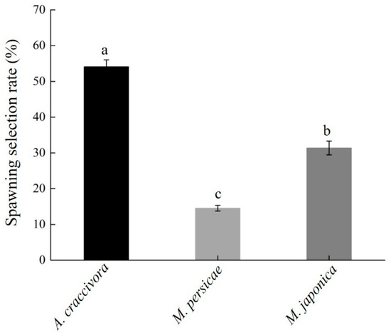 A. craccivora in the study, probably due to its higher nutritional return among these three species of aphids. At the same time, the spawning selection rate of