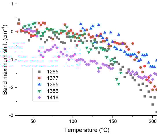Temperature shifts in maximum positions corresponding to bands at 1265, 1365, 1377, 1386, and 1418 cm−1 for HS from soddy podzolic soil.