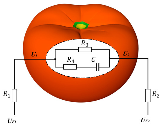 - Electrical impedance detection method: At present, the technology of biological quality analysis based on electrical impedance is relatively mature [11]. Arteaga and other scholars [12] evaluate the color and cell size through the calculation algorithm with biological electrical impedance, providing a powerful tool for assessing the cell damage of blueberries during freezing. Chowdhury et al. [13] studied all impedance parameters Z, phase angle, the real part of Z, and imaginary part of Z of bananas, and analyzed the ripening phenomenon of bananas from the perspective of impedance. Li et al. [14] used leaf impedance spectroscopy to evaluate tomato nitrogen nutrition levels, achieving early diagnosis and monitoring of tomato nitrogen content. Electrical impedance can be conveniently applied to early diagnosis and monitoring of tomato nitrogen nutrition stress.