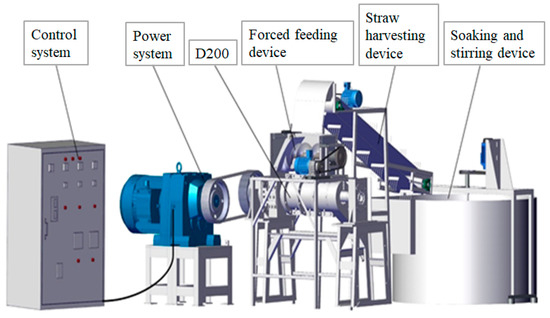 Instruments and equipment for optimizing process parameters of straw fiber-based plant fiber seedling pot materials: D200 Straw Fiber Extraction Machine (self-made by the dry crop main crop mechanization, materialization technology, and equipment discipline team at Northeast Agricultural University, as shown in Figure 1); ZT4-00 Vali Beater (Zhongtong Testing Equipment Co., Ltd., Xingping, China); ZJG-100 Xiao Bo Shi Beating Degree Tester (Changchun Yueming Testing Device Co., Ltd., Changchun, China); ZCX-A Paper Sheet Former (Changchun Yueming Small-Scale Testing Machine Co., Ltd., Changchun, China);ZL-3006 Pendulum-type Paper Tensile Strength Measuring Instrument (Jinan Redck Instrument Co., Ltd., Jinan, China); HK-TQD01 Xiao Bo Er-type Air permeance Tester (Jinan Derek Instrument Co., Ltd., Jinan, China); DCP-SLY1000 Computer Control Paper Tear Strength Tester (Sichuan Changjiang Paper Instrument Co., Ltd., Luzhou, China); DGG-9070AD Electric Constant Temperature Blast Drying Oven (Shanghai Senxin Experimental Instrument Co., Ltd., Shanghai, China); FQA360 High-Precision Fiber Quality Analyzer (Optest Canada); JA5003N Electronic Balance (Accuracy 0.001 g, Shanghai Jinghai Instrument Co., Ltd., Shanghai, China).