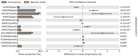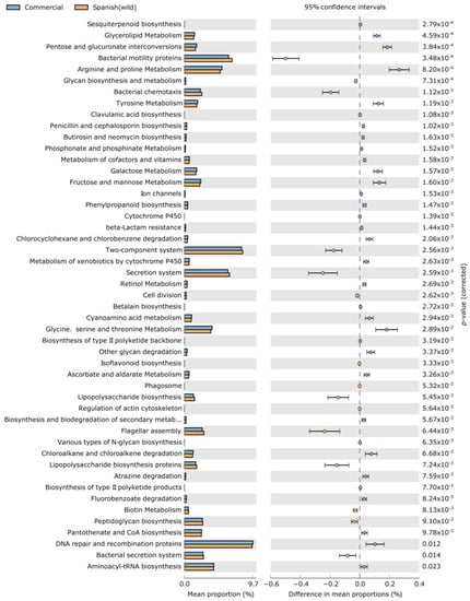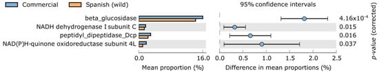 - Parks, D.H.; Tyson, G.W.; Hugenholtz, P.; Beiko, R.G. STAMP: Statistical analysis of taxonomic and functional profiles. Bioinformatics 2014, 30, 3123–3124. [Google Scholar] [CrossRef]