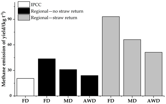 28. Wang, J.; Akiyama, H.; Yagi, K.; Yan, X. Controlling variables and emission factors of methane from global rice fields. Atmos. Chem. Phys. 2018, 18, 10419–10431. [Google Scholar] [CrossRef]