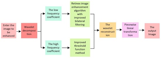 - In order to optimize the performance of disease features, an improved IBFTF image enhancement algorithm is proposed, in which wavelet transform is used to combine image enhancement and de-noising. Firstly, the noise image is decomposed by wavelet, obtaining the low frequency (LF) and high frequency (HF) coefficients. The HF coefficients were denoised using an enhanced threshold function method, while the LF coefficients were denoised using an improved bilateral filtering Retinex image enhancing algorithm. Then, the rebuilt image is obtained by inverse wavelet transform. Finally, to boost the comparison of the rebuilt image, linear segmentation processing is utilized. In comparison to existing algorithms, this approach can remove the halo effect, image blur, detail loss, and grayscale phenomenon from the image and effectively remove noise;