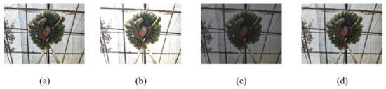Since there isn’t a publicly accessible banana crown image dataset, this article will create one in order to conduct its research. Because banana crown cutting is typically done in in a simple shack, the banana crown images used in this paper are acquired in the same environment, as seen in Figure 1. A total of 508 images of banana crown were taken using a 16-megapixel high-resolution camera at various distances and angles. Since banana crown cutting operations are mainly carried out during the day, the images utilized in the experiment were collected from 10 a.m. to 6 p.m.