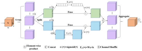 - Zhang, Q.L.; Yang, Y.B. Sa-net: Shuffle attention for deep convolutional neural networks. In Proceedings of the ICASSP 2021–2021 IEEE International Conference on Acoustics, Speech and Signal Processing (ICASSP), Toronto, ON, Canada, 6–11 June 2021; pp. 2235–2239. [Google Scholar]