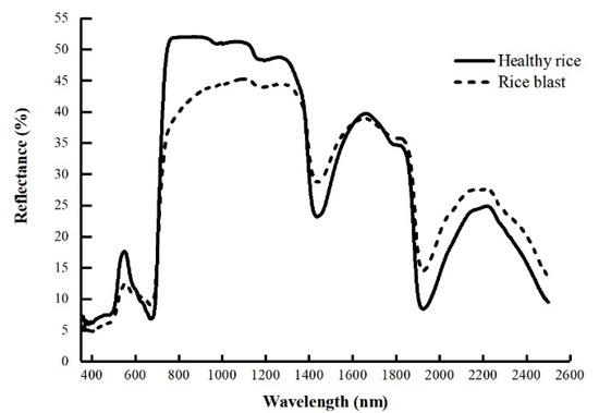 | Rice panicle blast | 430–530, 580–680, 1480–2000 nm, R459, R546, R569, R590, R775, R981 | [1,15] | |