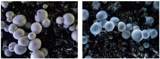 In this study, we selected A. bisporus grown in a factory greenhouse as the research object and collected 200 high-resolution images (4032 × 3024). The acquired data included images of A. bisporus under various lighting conditions, at different fruit densities, of different sizes, and under different adhesion and overlapping conditions to ensure the robustness and detection accuracy of the trained model for A. bisporus images in the mushroom growing house environment. Unlike other fruits, dense overlapping is common in A. bisporus at naturally growing states (as shown in Figure 1).