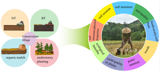 NT, RT, organic mulch, and understory planting and their versatile effects in agroecosystems.