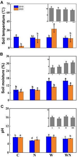 - Li, G.; Kim, S.; Han, S.H.; Chang, H.; Du, D.L.; Son, Y. Precipitation affects soil microbial and extracellular enzymatic responses to warming. Soil Biol. Biochem. 2018, 120, 212–221. [Google Scholar] [CrossRef]