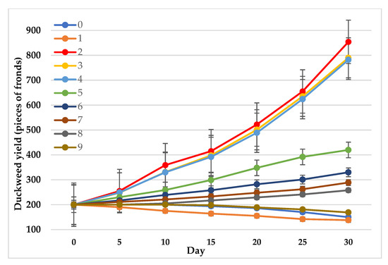 - Iwano, H.; Hatohara, S.; Tagawa, T.; Tamaki, H.; Li, Y.-Y.; Kubota, K. Effect of treated sewage characteristics on duckweed biomass production and microbial communities. Water Sci. Technol. 2020, 82, 292–302. [Google Scholar] [CrossRef]