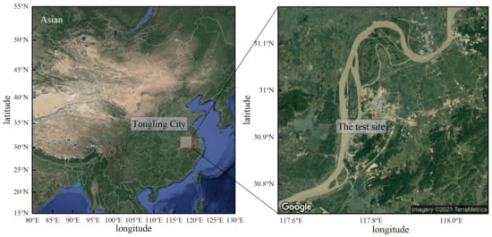 As shown in Figure 1, the test site is located in Tongling City (30°57′ N, 117°49′ E), Anhui Province, China. The test site was established on two adjacent Cd-contaminated farmlands around a large pyrite mining area. The soil from the experimental field was characterized as sandy loam, with a composition of 25.8% clay, 11.5% silt, and 62.7% sand. The basic physical and chemical properties of the soil and the mass fraction of heavy metal Cd in the two test sites are shown in Table 1.