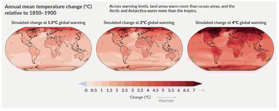 Annual mean temperature change (°C) relative to 1850–1900 according to Shukla et al. (2022) [1].