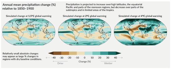 Annual mean precipitation change (%) relative to 1850–1900 according to Shukla et al. (2022) [1].